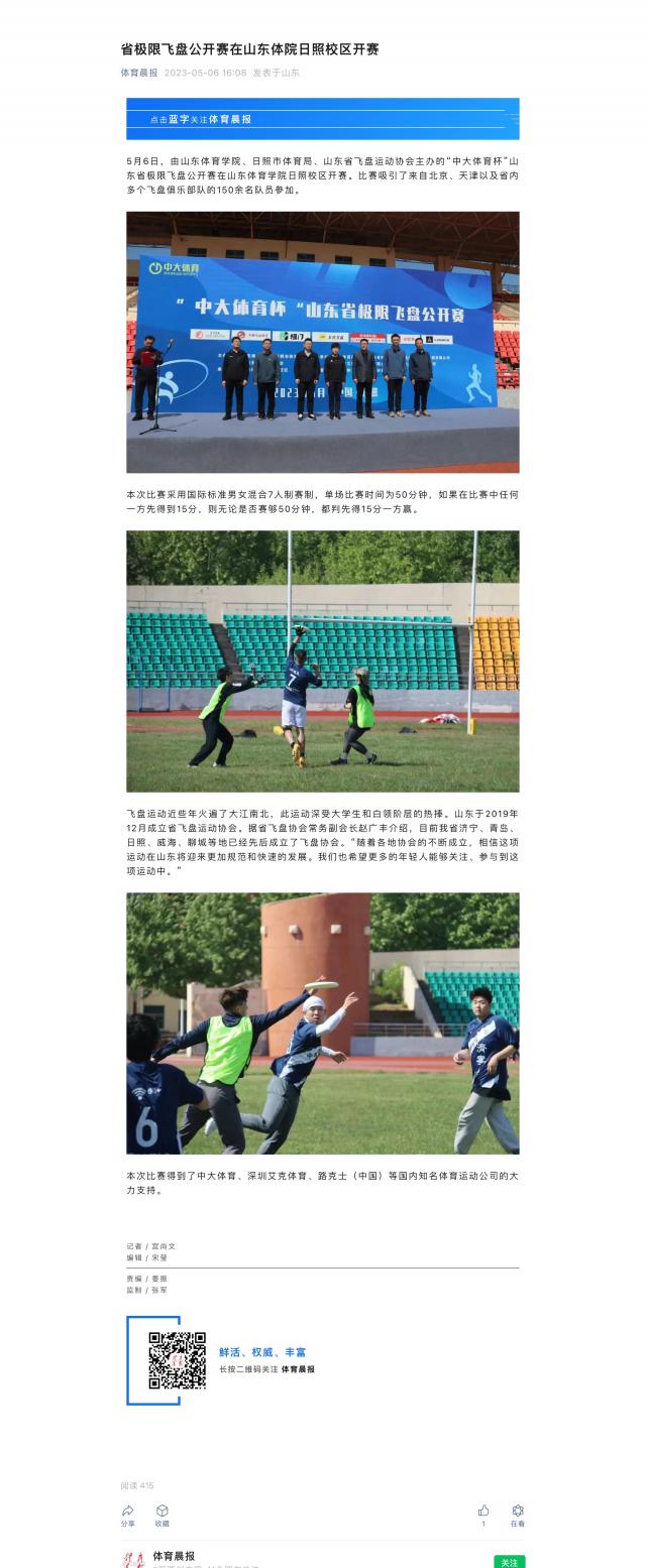【体育晨报】省极限飞盘公开赛在山东体院日照校区开赛