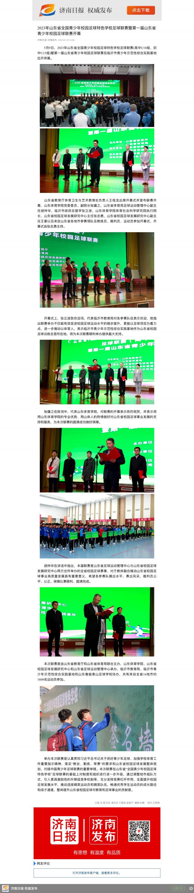 【济南日报】2023年山东省全国青少年校园足球特色学校足球联赛暨第一届山东省青少年校园足球联赛开幕