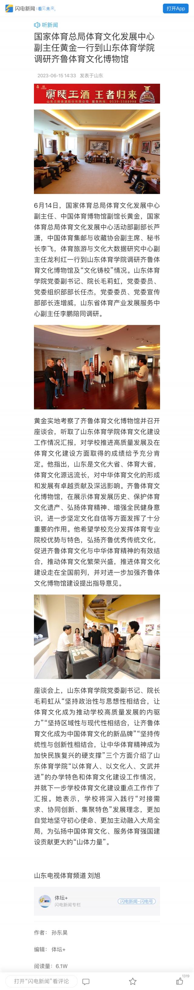 【闪电新闻】国家体育总局体育文化发展中心副主任黄金一行到山东体育学院调研齐鲁体育文化博物馆
