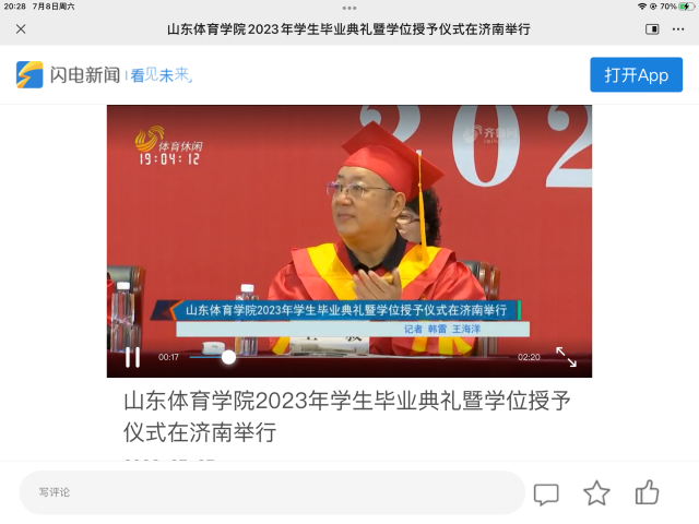 【闪电新闻】山东体育学院2023年学生毕业典礼暨学位授予仪式在济南举行