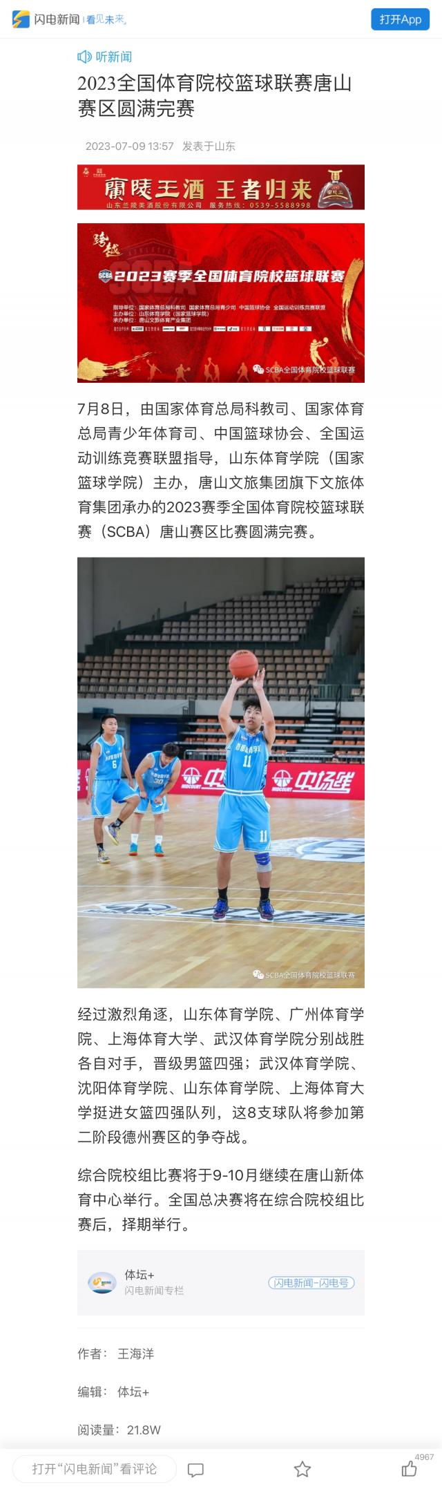 【闪电新闻】2023全国体育院校篮球联赛唐山赛区圆满完赛