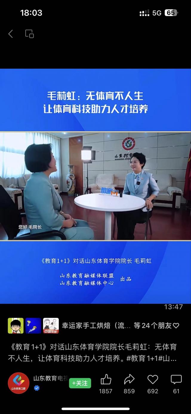 《教育1+1》对话山东体育学院院长毛莉虹:无体育不人生,让体育科技助力人才培养。#教育1+1#山东体育学院#杭州亚运会