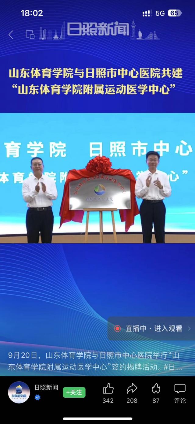 9月20日,山东体育学院与日照市中心医院举行“山 东体育学院附属运动医学中心”签约揭牌活动。#日照 #本地新闻
