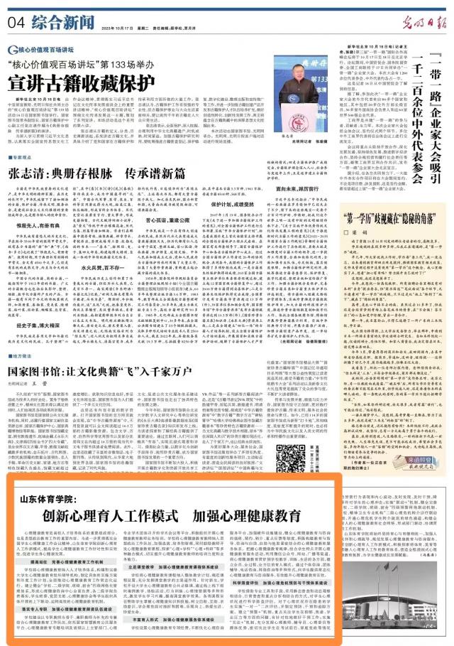 【光明日报】山东体育学院 创新心理育人工作模式,加强心理健康教育