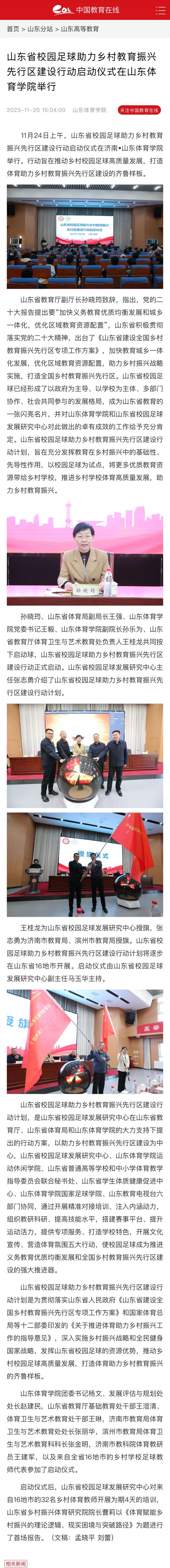 【中国教育在线】山东省校园足球助力乡村教育振兴先行区建设行动启动仪式在山东体育学院举行