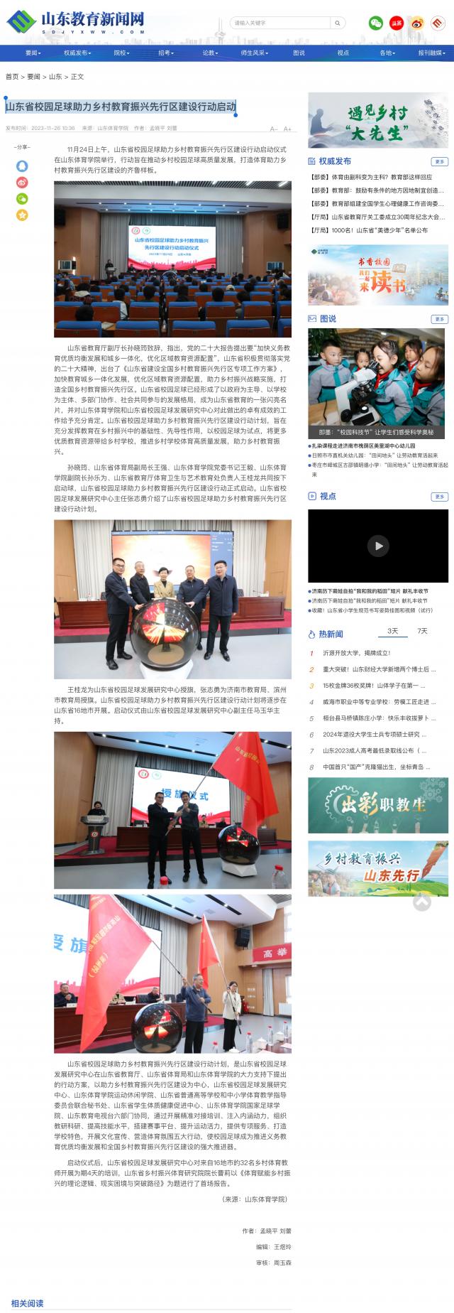 【山东教育新闻网】山东省校园足球助力乡村教育振兴先行区建设行动启动
