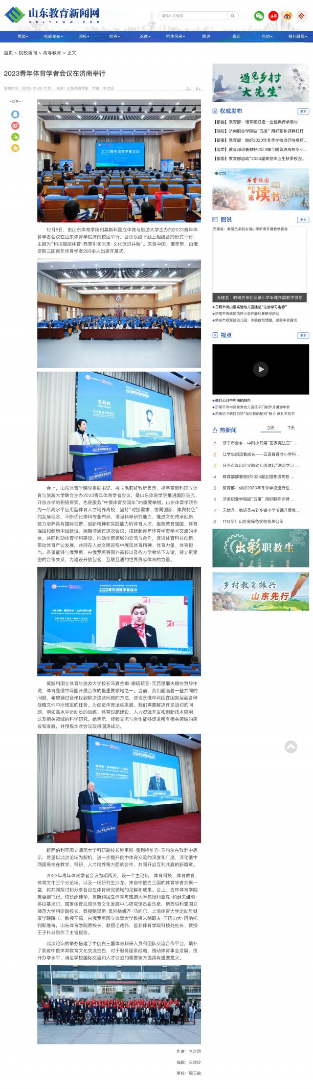 【山东教育新闻网】2023青年体育学者会议在济南举行