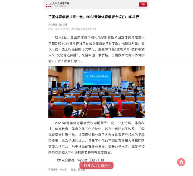 【大众日报】三国体育学者共聚一堂,2023青年体育学者会议在山东举行