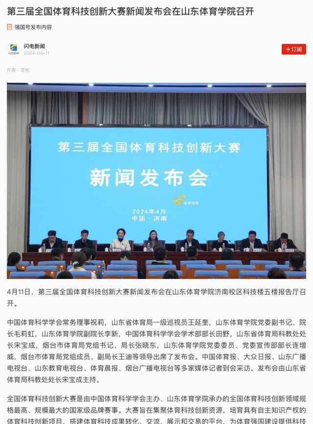 学习强国:第三届全国体育科技创新大赛新闻发布会在山东体育学院召开