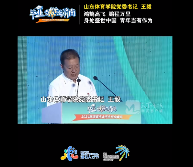 【天下泉城】#天下泉城 6月18日,#毕业当燃在济南 2024届济南市大学生毕业典礼举行。山东体育学院党委书记王毅:鸿鹄高飞,鹏程万里,身处盛世中国,青年当有作为!