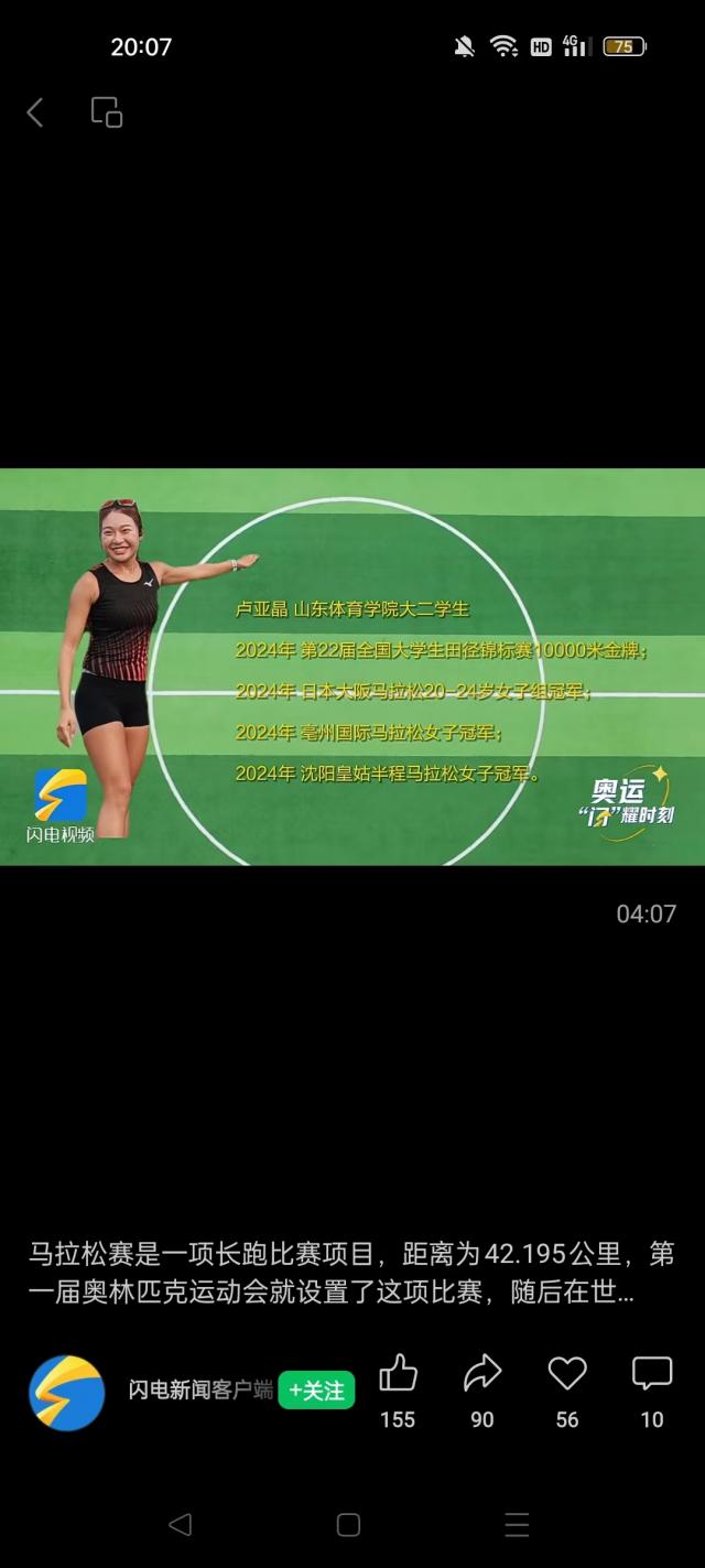【闪电新闻】马拉松赛是一项长跑比赛项目,距离为42.195公里,第一届奥林匹克运动会就设置了这项比赛,随后在世界各地盛行。马拉松的魅力,一个是比赛场地的开放,对参赛者来说,每跑一步、每过一段都是不同的风景;另一个魅力是对参赛者的包容,无论专业运动员还是业余爱好者,大家都可以挤在一起比赛。 在山东体育学院,有一名大二学生,她叫卢亚晶,参加马拉松训练5年来,获得了2024年第22届全国大学生田径锦标赛10000米金牌、2024年日本大阪马拉松20-24岁女子组冠军、2024年亳州国际马拉松女子冠军、