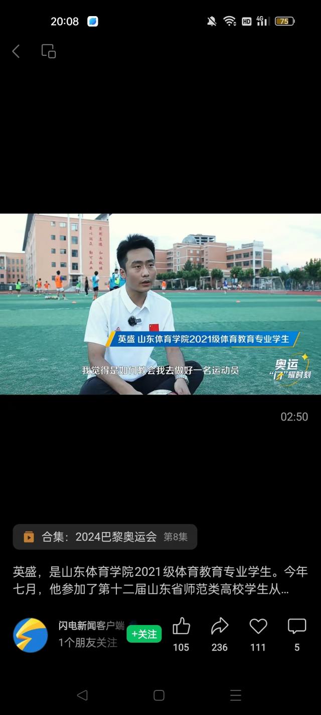 【闪电新闻】英盛,是山东体育学院2021级体育教育专业学生。今年七月,他参加了第十二届山东省师范类高校学生从业技能大赛,获得一等奖,并拿到了免试入职高中的资格,成为了一名准教师。这个暑期他回到自己的高中母校临沭二中,义务帮助学弟学妹们进行暑期训练,八年的体育生活让他感受到了体育给他带来的积极变化,他想让更多人感受到体育的魅力!