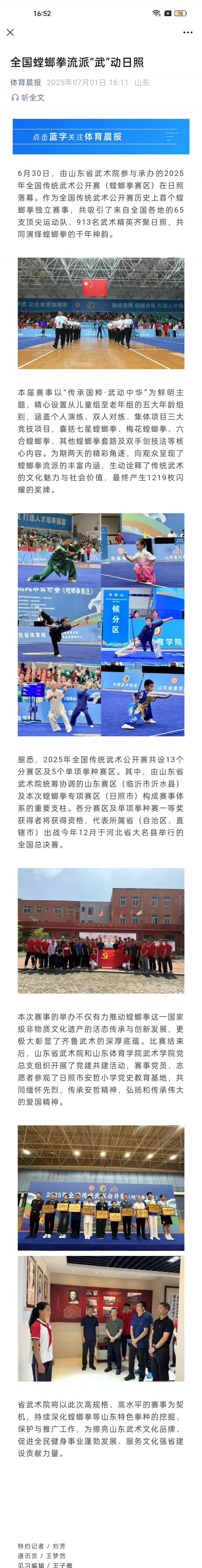 【体育晨报】全国螳螂拳流派“武”动日照