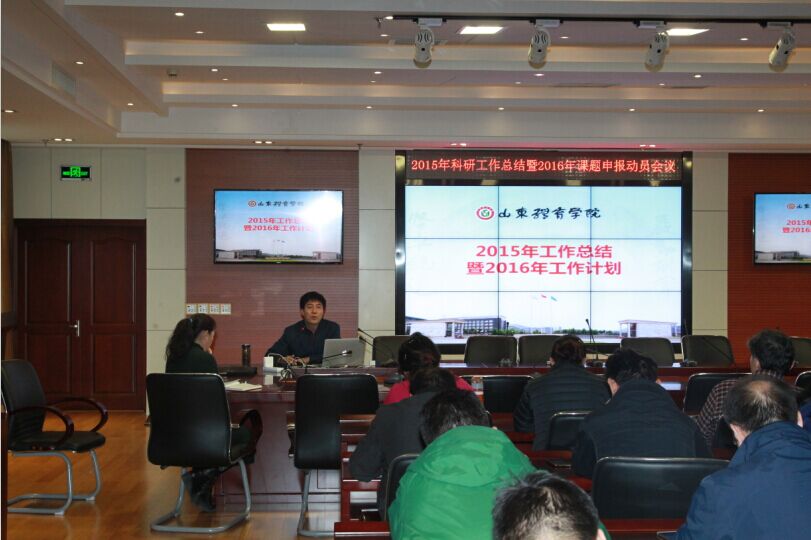 12月7日下午,我校在济南校区办公楼6楼会议室举行了“2015年科研工作总结暨2016年课题申报动员工作会议”。会议由科研处章岚处长主持,副院长毛德伟做了总结和部署报告,章岚处长布置了2016年课题申报工作的安排。