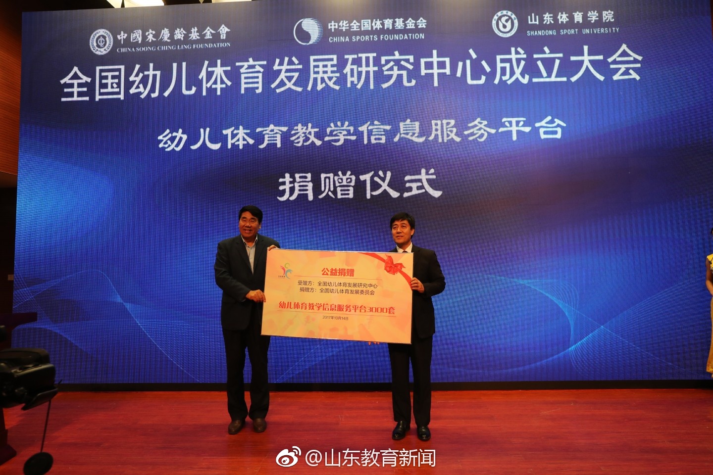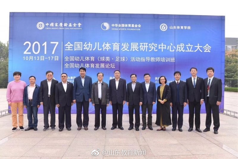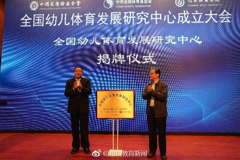 10月14日,全国幼儿体育发展研究中心成立大会在山东体育学院举行,这标志着经过积极充分筹备的全国幼儿体育发展研究中心正式落户山东体育学院。 山东体育学院党委书记王毅在致辞中介绍,成立全国幼儿体育发展研究中心是积极贯彻落实习近平总书记关于“少年强则中国强,体育强则中国强”等系列讲话的重要举措,是山东体育学院“对接需求、协同创新、集聚特色”办学理念的具体实践。该中心旨在打造集教学、科研、培训、活动“四位一体”的全国幼儿体育专业人才培养高地,从而推动我国幼儿体育教育事业的发展,培养健康阳光、富于进取、善于合作、适应社会、开拓未来的新一代社会主义建设者和接班人。 中国奥委会副主席、中华全国体育基金会理事长吴齐在讲话中说,山东体育学院作为山东省唯一的体育高等学府,在体育强省建设中具有独特地位和优势,成立全国幼儿体育发展研究中心,对深入落实全民健身、健康中国等国家战略,发挥体育教育资源与科研优势,联合政府、社会等各方面的资源成立跨界平台,率先开展幼儿体育教育专业人才培养和幼儿体育、幼儿健康领域的科学研究、师资培训、幼儿体育交流活动具有极其深远意义。 大会开幕式上,中国奥委会副主席、中华全国体育基金会理事长吴齐与山东省关心下一代工作委员会常务副主任崔曰臣为全国幼儿体育发展研究中心揭牌。全国幼儿体育(足球)发展委员会向中心捐赠3000套幼儿体育教学信息服务平台系统,用于三方共同推广以山东省为中心辐射全国的幼儿体育教育的信息服务。 大会期间,将举办为期五天的第三期全国幼儿体育(球类足球)活动指导教师培训,有来自全国的100名在职幼儿教师参加。培训活动围绕幼儿体育游戏、幼儿足球理论、幼儿足球技术实践及示范课进行幼儿体育(球类足球)活动指导教师的培训。 山东体育学院和北京大学妇女儿童体育研究中心、全国幼儿体育发展委员会共同举办的全国幼儿体育发展论坛同时进行。来自全国各地的近200名幼儿园园长及骨干教师、政府主管部门负责人、幼儿体育教育专家学者参加会议。全国幼儿体育专家指导委员会主任胡建国、北京大学妇女儿童体育研究中心主任董进霞教授作主旨报告,针对幼儿园如何开展体育教学活动、幼儿体育教育专业人才的培养等问题,山东体育学院李海霞博士及部分幼儿教育行业专家将发表建议和分享经验。 此次大会由中国宋庆龄基金会和中华全国体育基金会主办,山东体育学院、全国幼儿体育专家指导委员会、全国幼儿体育发展委员会承办。