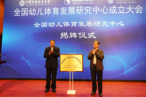 大会开幕式上,中国奥委会副主席、中华全国体育基金会理事长吴齐与山东省关心下一代工作委员会常务副主任崔曰臣为全国幼儿体育发展研究中心揭牌。全国幼儿体育(足球)发展委员会向中心捐赠3000套幼儿体育教学信息服务平台系统,用于三方共同推广以山东省为中心辐射全国的幼儿体育教育的信息服务。
