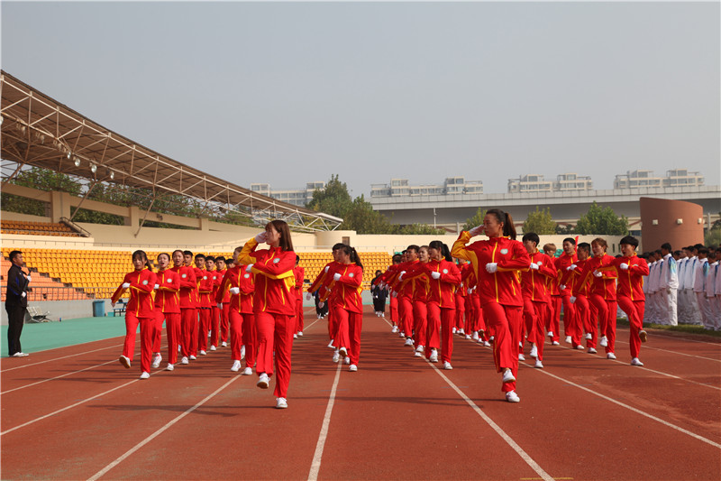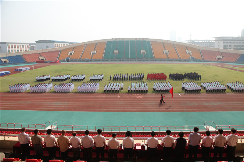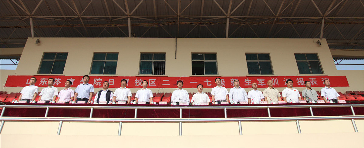 9月17日,山东体育学院日照校区2017级新生军训汇报在田径场隆重举行。院长、党委副书记毛德伟,副院长、党委委员、日照校区管委会主任谷忠德,武警日照支队中队长戴磊,党委院长办公室主任连增威,以及各部门和各学院负责人出席了此次汇演。军训汇演由日照校区管委会副主任单兆升主持。