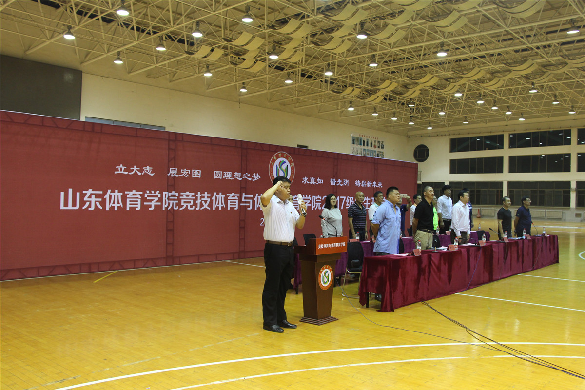 典礼上,赵孝彬带领2017级新生进行了入学宣誓仪式;潘永生、龚大利分别介绍运动训练专业和体育教育专业相关情况。