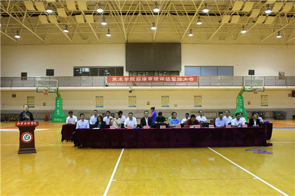 10月9日晚,武术学院在日照校区国家两院篮球馆隆重举行迎接审核评估工作动员大会。日照校区管委会副主任单兆升参加大会。武术学院院长王美娟做讲话。党总支书记任日辉主持会议。日照校区办公室主任杜韬,学生处副处长吴保双、团委副书记桑辉,以及武术学院全体师生参加大会。