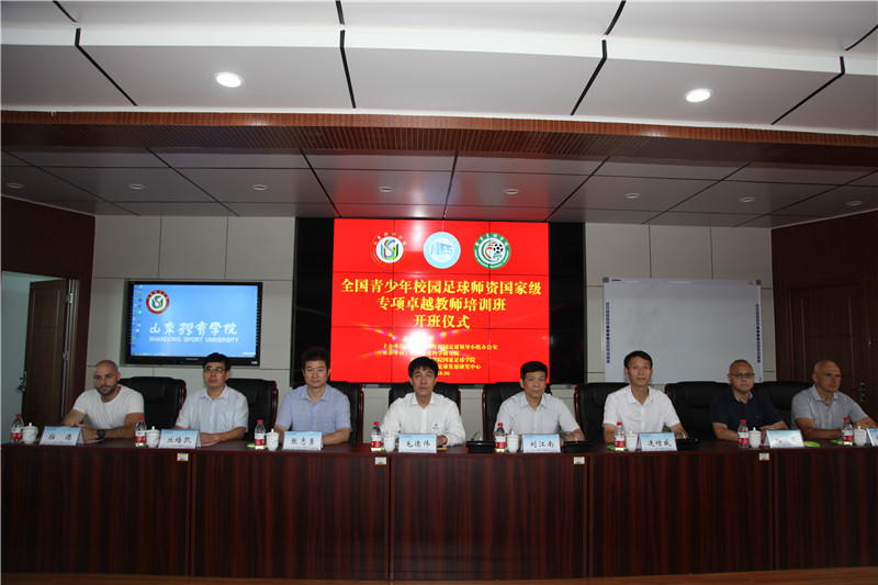 7月5日,2018年全国青少年校园足球师资国家级专项卓越教师培训开班典礼,在山东体育学院日照校区国家足球学院培训楼5楼报告厅举行。山东体育学院校长毛德伟,中国足协战略发展委员会委员、全国青少年校园足球专家委员会副主任刘江南,山东体育学院日照校区管委会副主任、国家足球学院副院长连增威,山东体育学院日照校区管委会副主任丛培凯,山东省校园足球发展研究中心主任、山东体育学院体育社会科学学院院长张志勇,全国青少年校园足球卓越师资国家级专项培训讲师、重庆市南岸区珊瑚浦辉实验小学校长刘君,国家足球学院教师、欧足联A级教练员、米卢团队执行教练员拉德(Rade Milić),国家足球学院教师、欧足联A级教练员拉威尔(Dunihin Pavlo)参加典礼。典礼由连增威主持。