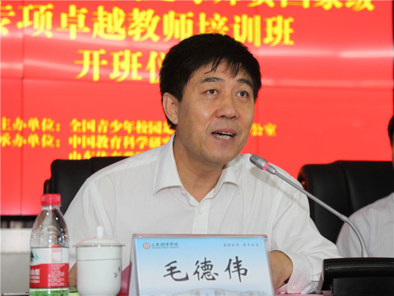 毛德伟致欢迎辞。他首先代表山东体育学院向参与本次开班仪式的各位专家和学员表示热烈的欢迎。他指出,山东体育学院是一所因体育而生、以体育为本的大学。学院秉承“严勤创实”的校风和“坚卓竞远”的校训,坚持“对接需求、协同创新、集聚特色”的发展理念,以全面提高人才培养质量为中心,紧扣加快内涵发展和深化改革创新主线,积极实施“质量立校、人才强校、科研兴校、文化铸校、依法治校”发展战略。建校60周年以来,学校各项工作均取得长足发展。他强调,国家足球学院坚持立足山东、面向全国,服务于足球运动项目的竞技体育、群众体育和体育产业发展的办学定位。一年来,国家足球学院的教学工作的中心地位得到进一步加强,竞赛引领和品牌效应进一步凸显,科研、国际交流与合作平台逐步完善,培训工作的作用和影响力不断提升。最后,他衷心祝愿专家、学员能圆满完成培训任务,希望学员在未来的教学和教练的工作中能够不断的取得新的、更大的成绩!