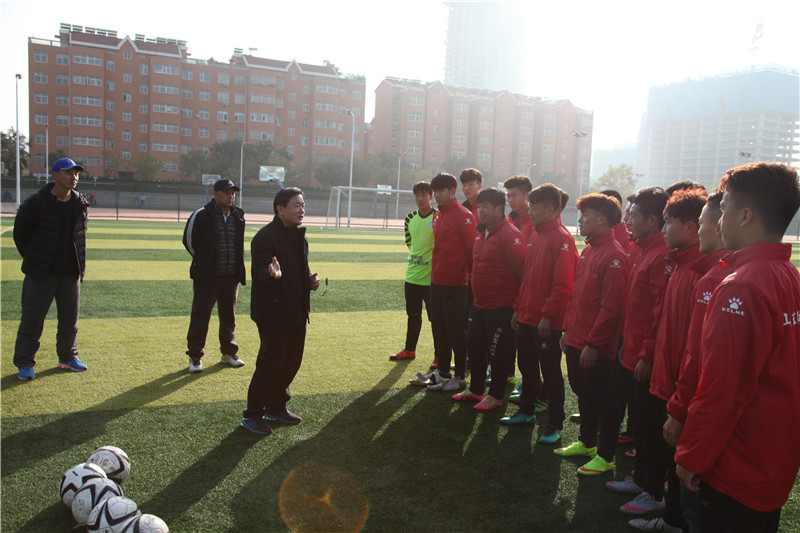 11月11日,副院长、日照校区管委会主任谷忠德到足球训练场看望正在训练的校男子足球队,了解训练和参赛准备工作情况,并为即将出征参加2016年全国体育院校足球锦标赛的校队全体队员加油鼓劲。竞赛训练处处长张晓东、体育教育学院副院长潘永生、校队主教练秦凯老师陪同并参加动员。