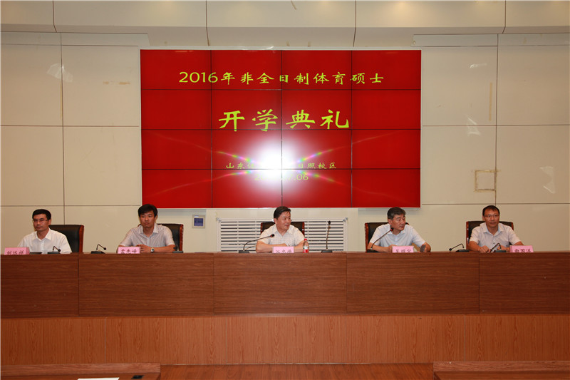 2016年7月6日晚,我校在日照校区教学楼学术报告厅举行了2016年非全日制体育硕士开学典礼,参加暑期面授的2014级和2015级非全日制体育硕士共145人。山东体育学院副院长、学位委员会副主任谷忠德教授出席典礼并致欢迎辞,研究生部主任吴耀宇、研究生部总支副书记孟先峰、副主任曲国洋和刘远祥等人参加典礼,典礼由吴耀宇主持。