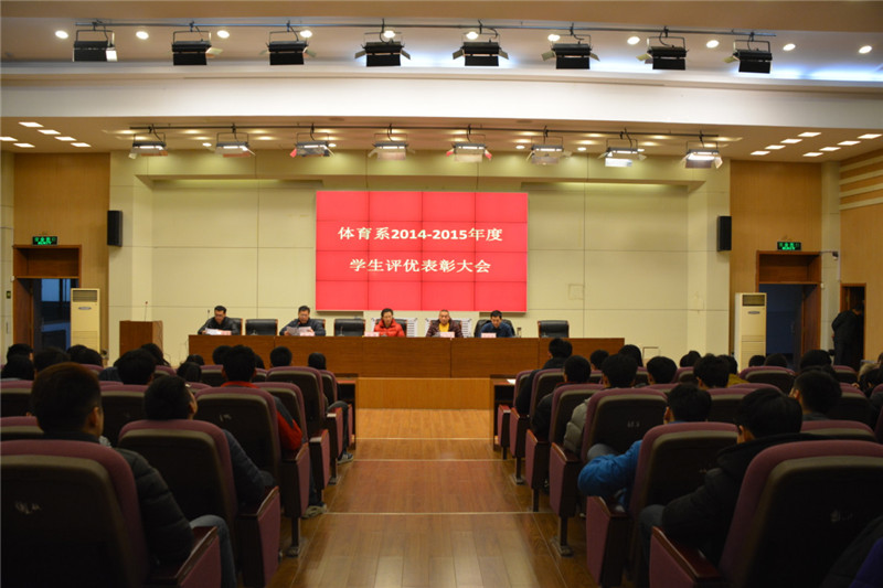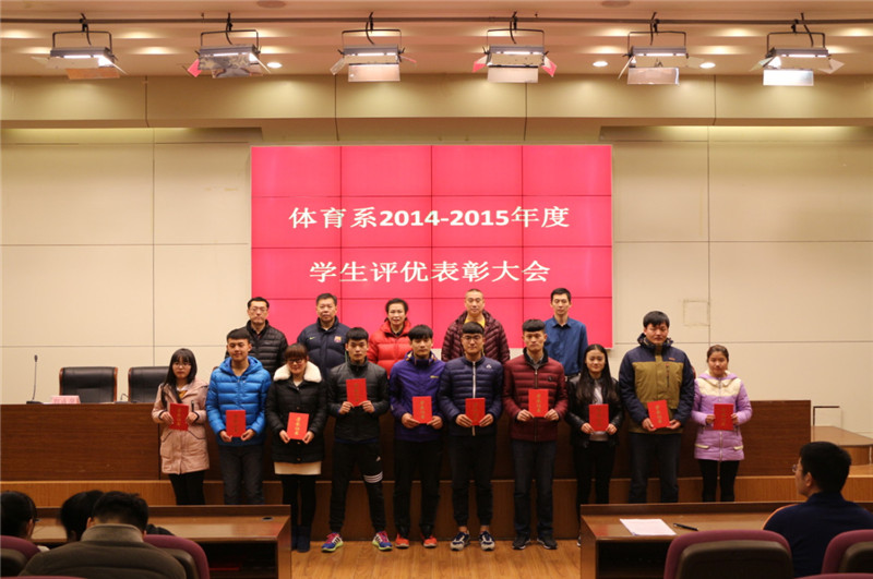 2016年1月11日,体育系在日照校区综合楼五楼报告厅隆重举行“2014—2015学年学生评优表彰大会”。体育系主任田敏,党总支书记宋信勇,副主任冉冰、张登峰出席大会,并为获得优秀奖的先进集体和先进个人颁奖。大会由体育系党总支副书记郭成岗主持。体育系辅导员和学生代表二百余人参加大会。