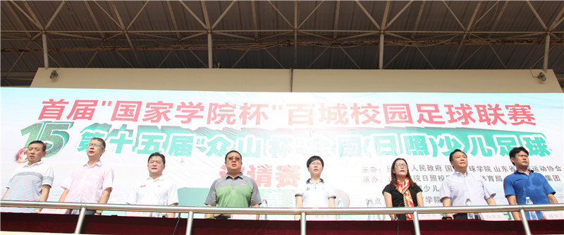 8月5日,首届“国家学院杯”百城校园足球联赛暨第十五届“众山杯”全国少儿足球邀请赛在山东体育学院日照校区隆重开幕。山东体育学院党委书记、国家足球学院院长王毅,日照市副市长林彦琴,山东体育学院副院长、国家足球学院常务副院长谷忠德,日照市体育局局长孟凡香,众山生物科技有限公司董事长赵贵吉,日照城市建设投资有限公司副总经理宋红旗等领导和嘉宾出席开幕式。本届比赛由日照市人民政府、国家足球学院、山东省足球协会主办,山东体育学院日照校区、日照市体育局、日照市城市建设投资集团有限公司、山东智诚体育发展有限公司共同承办。