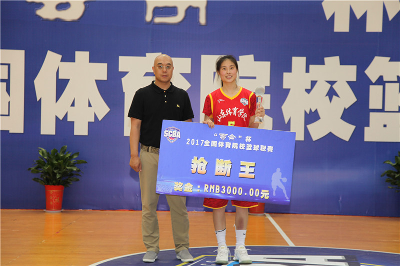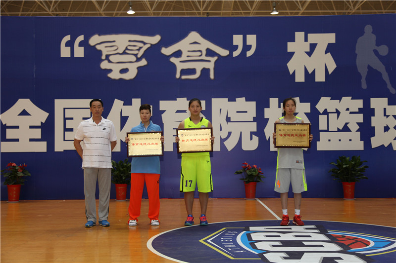 夏春宣布比赛成绩,以及获得体育道德风尚奖的单位和包括得分王、篮板王在内的个人奖项。沈阳体育学院、南京体育学院、成都体育学院获得体育道德风尚奖,沈阳体育学院吴爽获得得分王称号,山东体育学院王雨薇获得篮板王称号,山东体育学院王思雨获得抢断王和助攻王称号,山东体育学院房玲玲获得三分王称号,广州体育学院崔洪扬获得最有价值球员MVP称号。单兆升为获得体育道德风尚奖的单位颁奖,杨磊为“优秀志愿者”颁发证书,田敏、周孟详、张晓东分别为获得“得分王、篮板王、抢断王、助攻王、三分王”称号的运动员颁奖,原维佳为获得MVP称号的运动员颁奖,李园春、侯冰为获得第三名的运动队颁奖,罗立、李国澄为亚军上海体育学院代表队颁奖。最后,原维佳、单兆升为获得冠军的广州体育学院代表队颁奖。