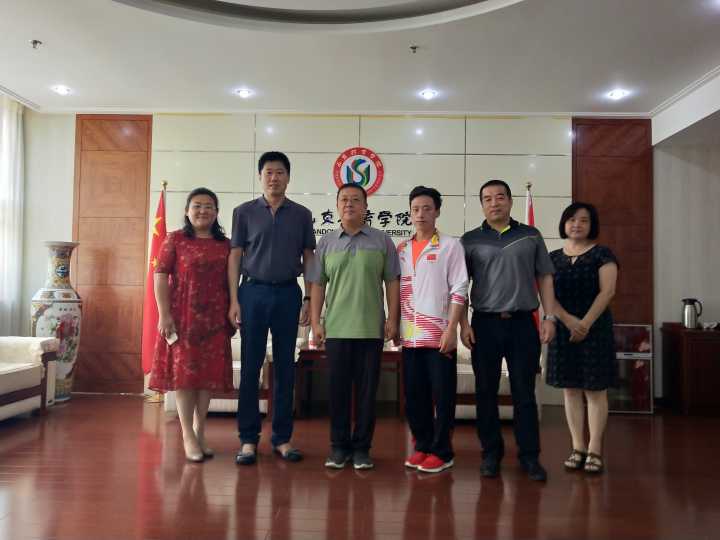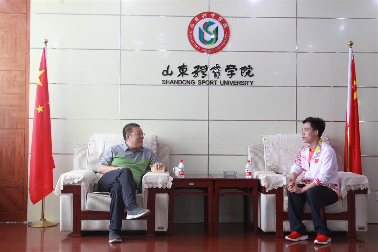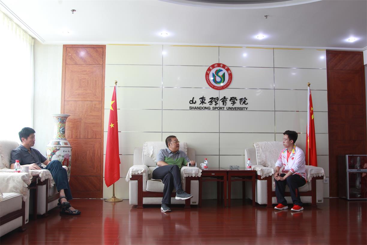 9月4日下午,山东体育学院党委书记王毅,副院长原维佳会见我校知名校友、雅加达亚运会首金获得者孙培原。