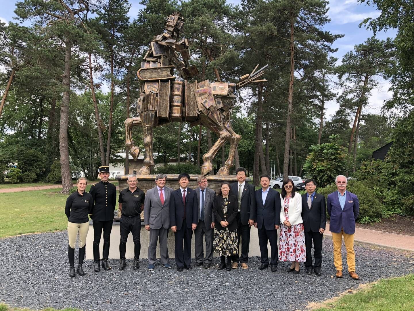 在法国索米尔市,代表团访问了索米尔市政府、黑骑士马术学校和昂热大学索米尔校区,受到索米尔卢瓦河地区主席、原索米尔市长马歇尔先生的热情接待,与黑骑士马术学校达成了联合培养优秀学生、毕业生的合作意向,与昂热大学索米尔校区达成2+1+2本科、硕士教育及教材、师资引进的合作意向。访问期间,毛德伟接受了索米尔当地媒体的采访,介绍了山东体育学院的办学特色、办学理念和国际化办学思路。