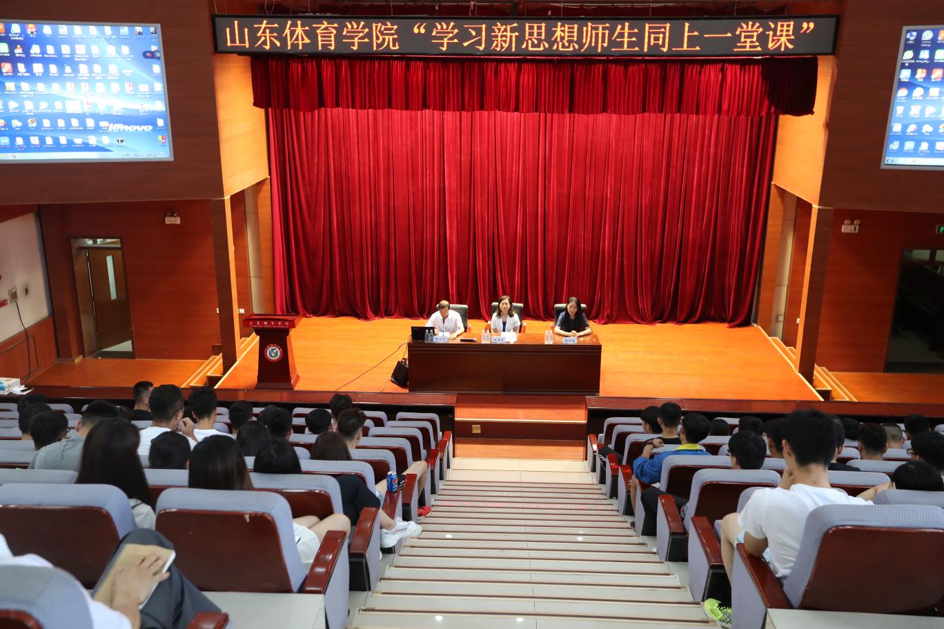 6月14日,山东体育学院报告厅内掌声不断。这里是 “学习新思想师生同上一堂课”的授课现场,山东大学民革建大支部主委刘海霞教授、山东建筑大学法学院党委副书记盛红梅教授为我校师生带来一场特别的思政大课。