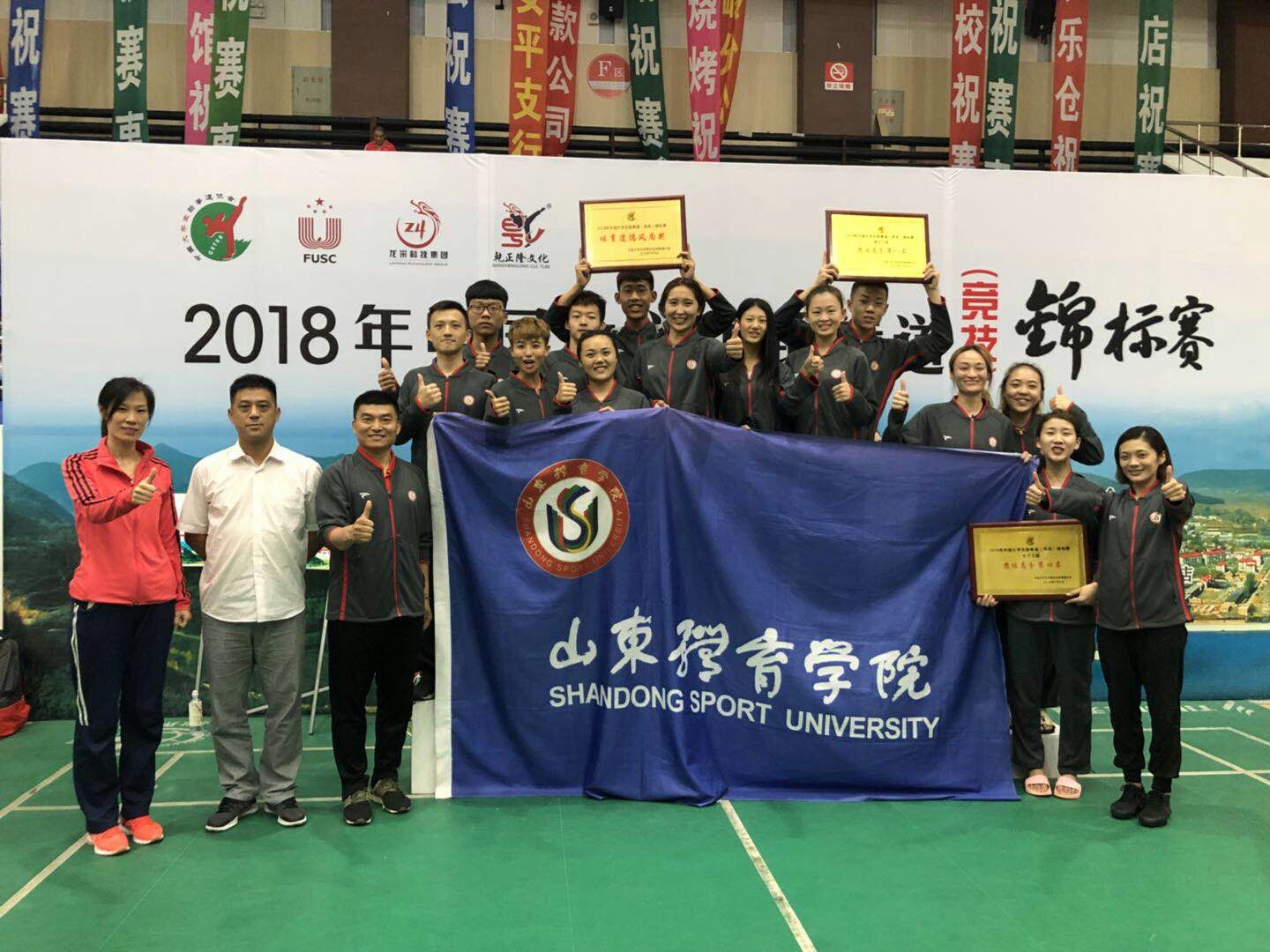 7月4-8日,2018年中国大学生跆拳道锦标赛在辽宁省辽阳市弓长岭区体育馆举行,全国110所大学的1089名运动员参赛。山东体育学院跆拳道代表队在吴庆胜和王爱玲两位教练的精心指导下,经过4天的激烈角逐、顽强拼搏,获得了2金3铜2个第五的优异成绩,并获“体育道德风尚奖”,吴庆胜老师被评为“优秀教练员”。(竞技体育与体育教育学院 于一)