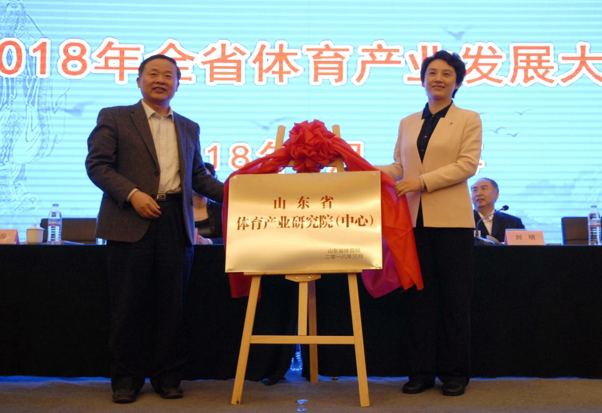 会议期间,省财政厅国有文化企业资产处处长张伯福和毛莉虹共同为山东省体育产业研究院(中心)揭牌。