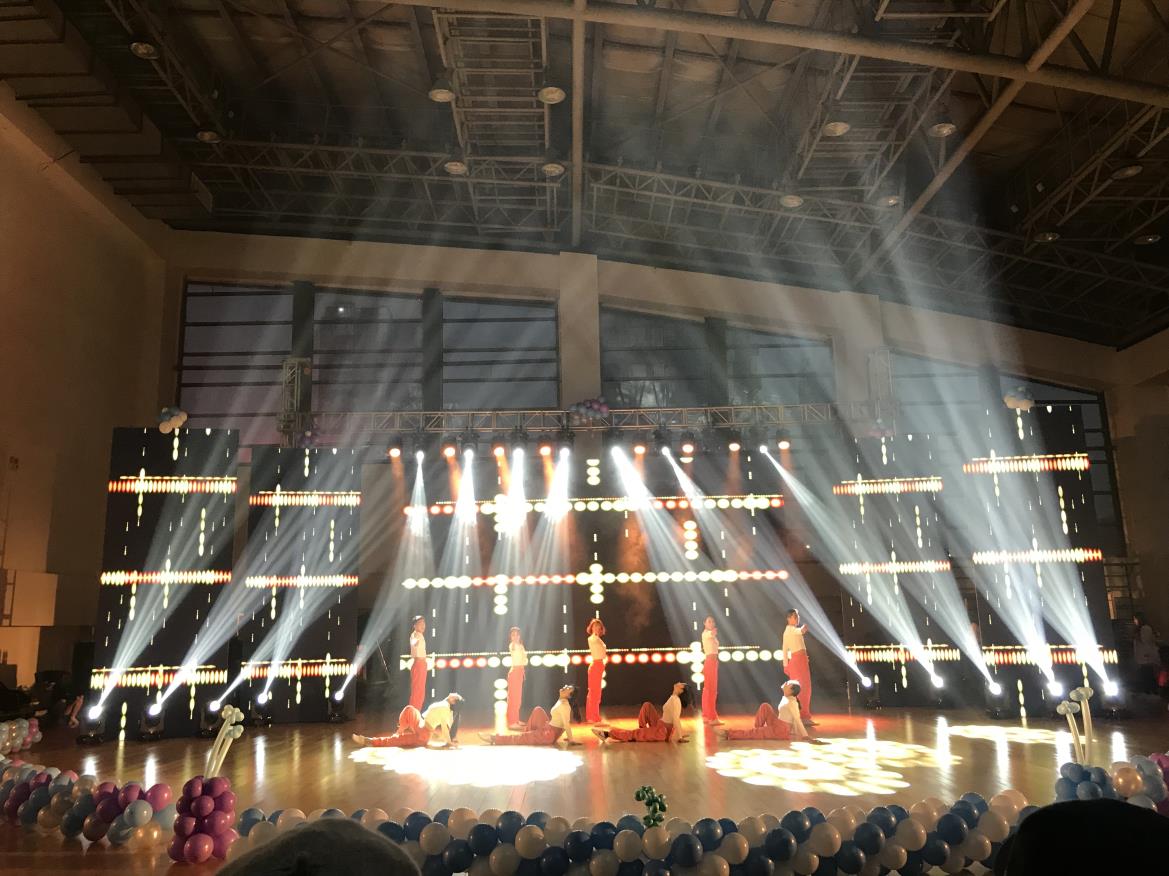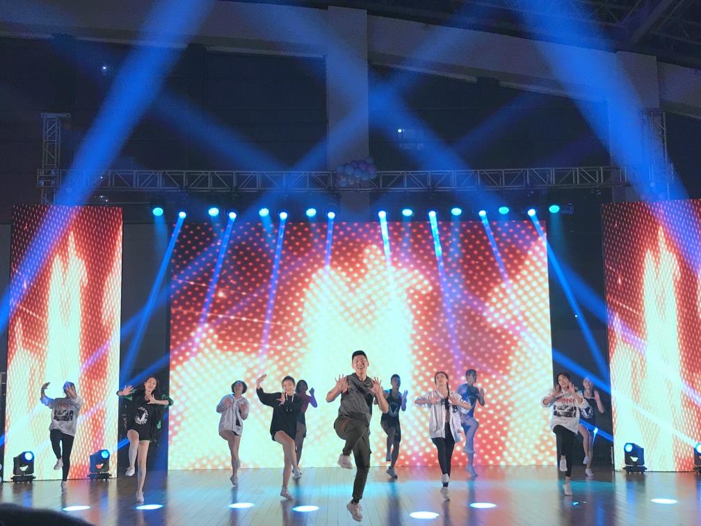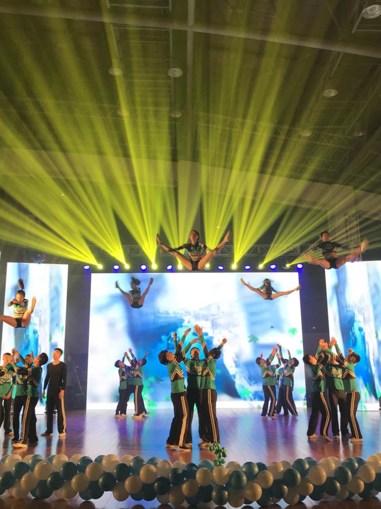 整台演出分两个篇章进行。第一篇章用激情的《竞技健美操》、《有氧踏板》《搏击操》等节目将演出推向了整场演出的高潮,第二篇章自创舞蹈《单车》、歌曲《没离开过》、朗诵《匆匆那年》将演出带向了感人的泪点。最后,汇报演出在同学们齐舞《我的天空》中完美落幕。