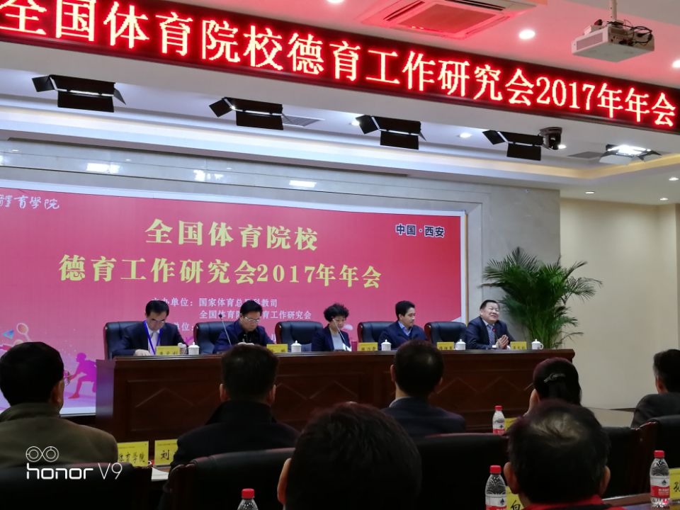 为深入学习贯彻党的十九大精神,积极探索新时期德育工作的实践方略,全面推动中国体育教育事业发展,11月18-19日,全国体育院校德育工作研究会2017年年会在西安体院举行,会议的主题是“立德树人、育才兴体、兴体报国”。国家体育总局科教司及全国十五所体育院校的分管校领导以及相关部门负责人出席了年会。我校原维佳副校长出席会议。