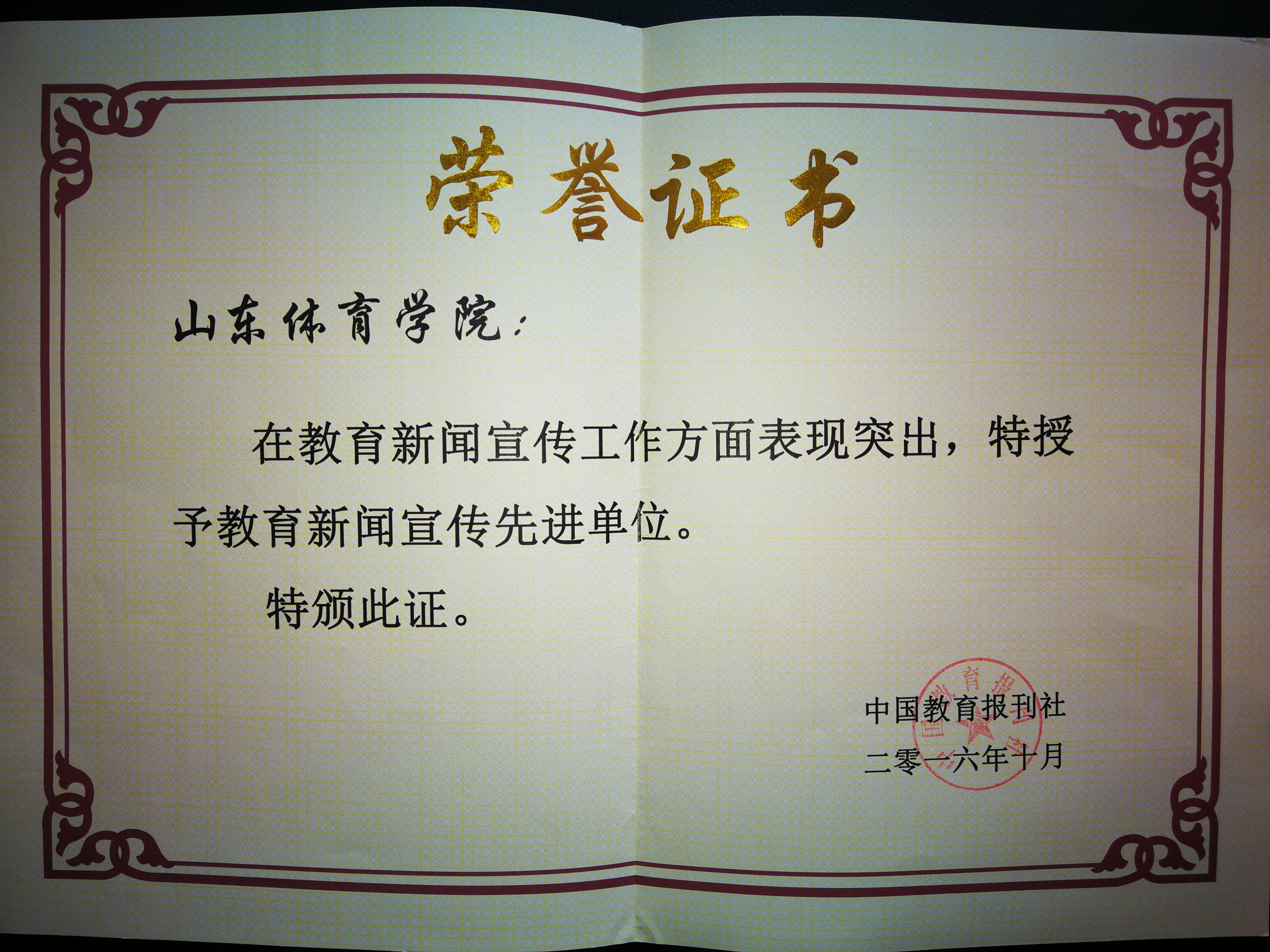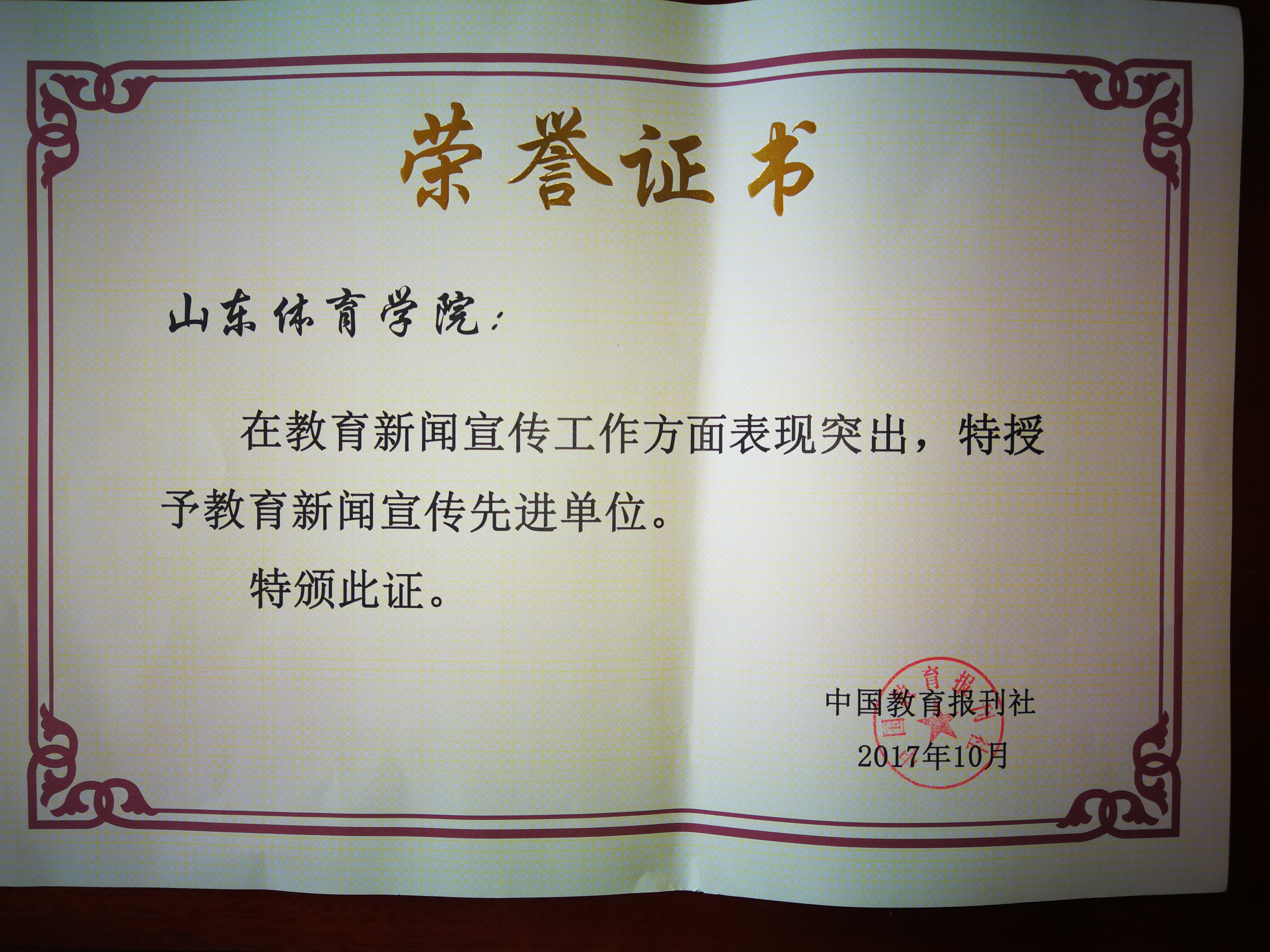 10月31日,山东体育学院被中国教育报刊社授予全省高校教育新闻宣传先进单位,这是我校继2016年获此荣誉后,再次获此殊荣。