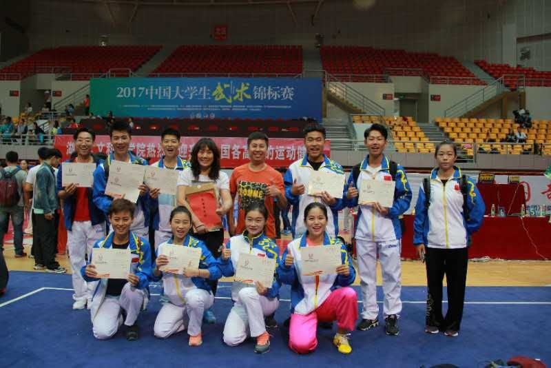 10月2-8日, 由中国大学生体育协会民族传统体育分会主办,湖南人文科技学院承办的2017年全国大学生武术套路锦标赛在湖南娄底市举行。我校代表队夺得金牌3枚,银牌1枚,铜牌7枚,5个第四名,4个第五名,2个第七名,1个第八名的历史最好成绩。教师宋红红被评为“优秀教练员”。