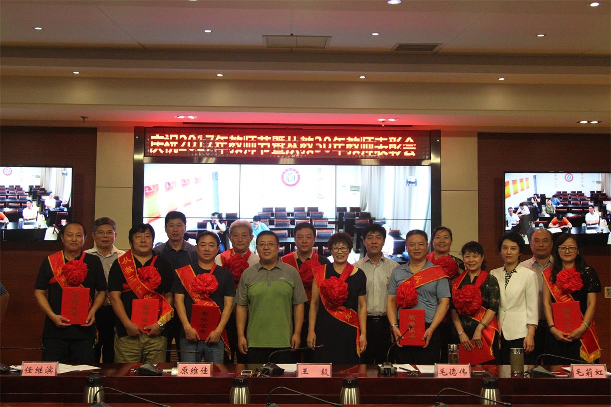 原维佳宣读了《关于表彰2017年度从事教育工作满三十年教师的决定》。校领导为10名受表彰教师颁发了荣誉证书。