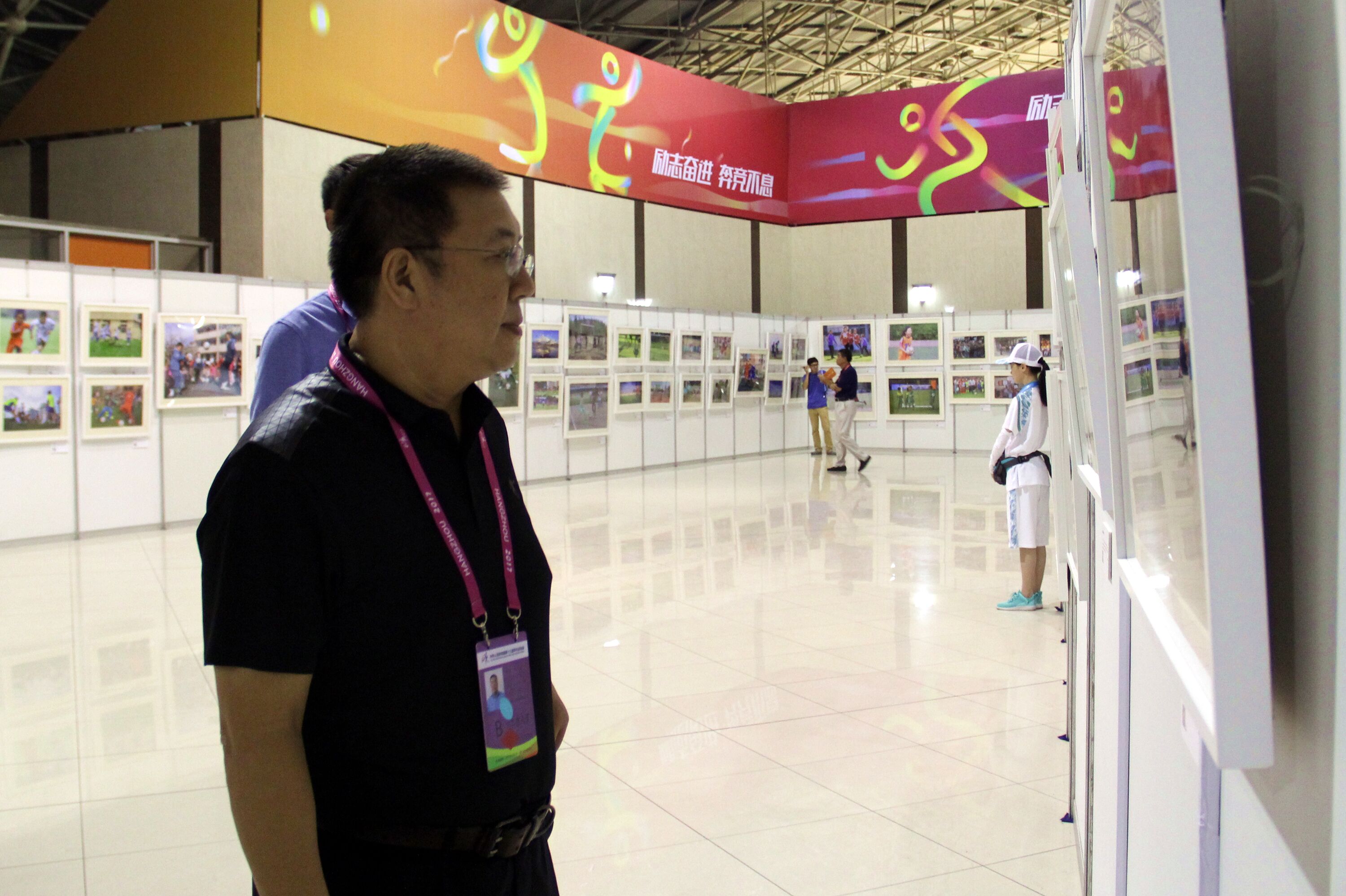 王毅参观“阳光青春 炫动足球——2017年全国青少年校园足球摄影展”。