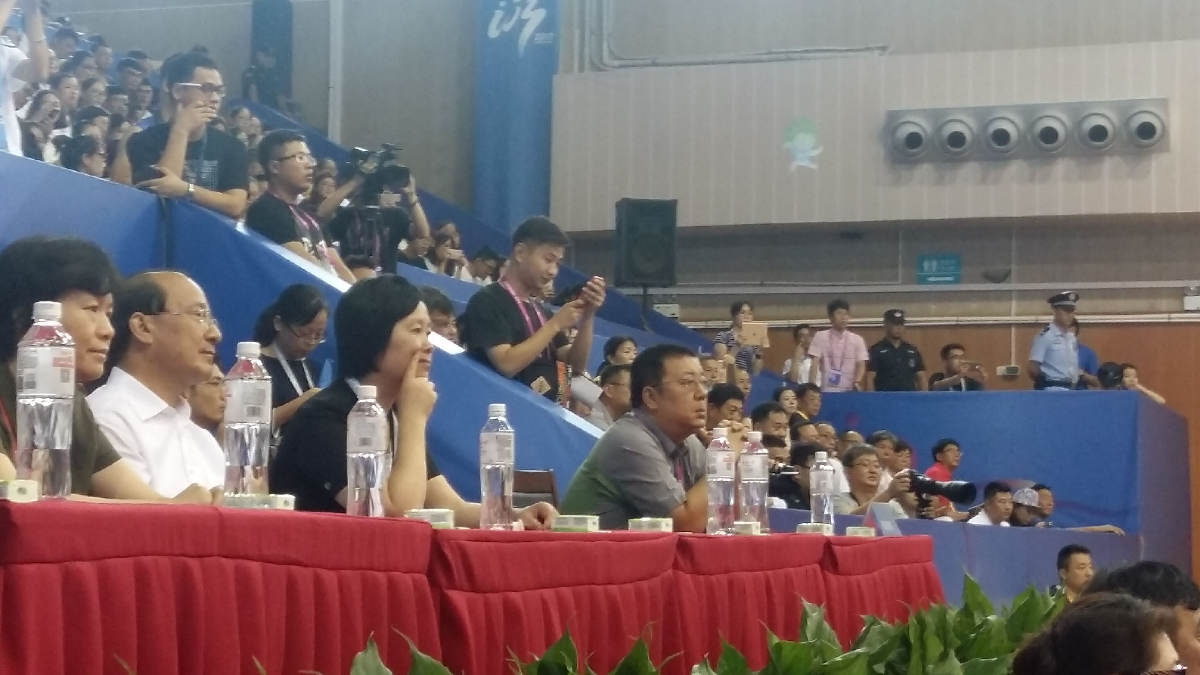 上午,季缃绮、左敏、王毅观看了武术比赛。