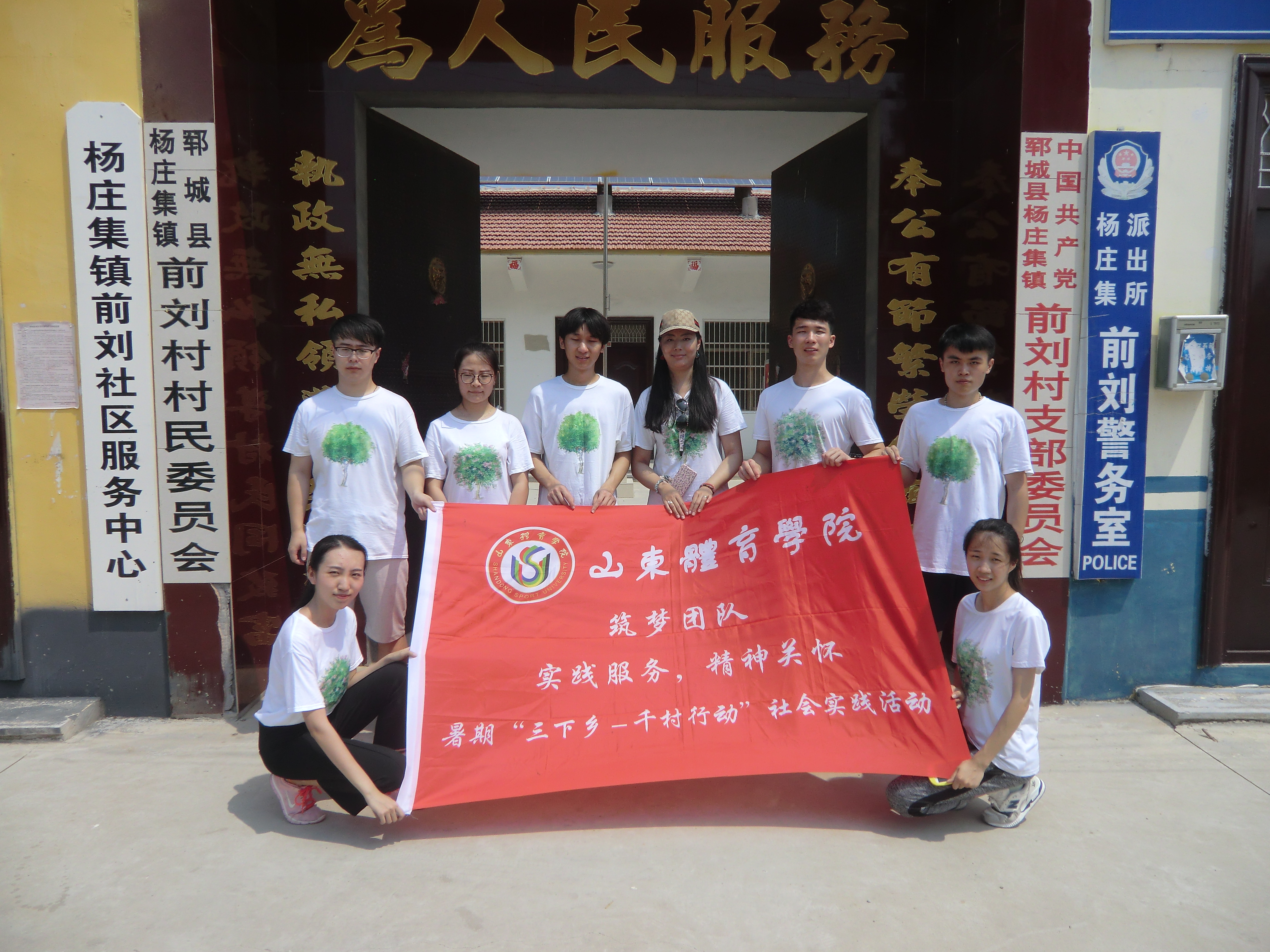 2017年7月10日,由山东体育学院应用心理专业和特殊教育专业的7名大学生组成的“筑梦团队”在陆红雨老师的带领下,奔赴菏泽市郓城县杨庄集镇前刘庄村开展大学生暑期三下乡千村行动社会实践。