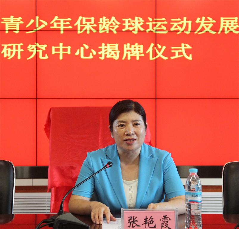 张艳霞在致辞中向参加揭牌仪式的中国保龄球协会、山东省小球运动管理中心的领导、各保龄球俱乐部的嘉宾和媒体朋友表示欢迎和感谢,对实现三方合作办学表示热烈的祝贺。指出,中国青少年保龄球人才研究发展中心是在国家“全民健身战略”、“健康中国战略”的背景下成立的,是山东体育学院“对接需求、协同创新、集聚特色”发展理念的体现。校企等多主体协同合作是学校推进办学模式和人才培养模式改革、增强学校为社会经济建设服务能力的有效途径,也是学校深入践行科学发展观、在改革中不断发展的有效举措。“十三五”以来,学校积极承担政治使命和社会责任,先后与多方协同构建了国家足球学院、国家篮球学院、国际马术学院、国家体育总局科学健身示范区、山东体育科技服务创新研发平台等近20个平台和基地,为体育事业的教学育人、科研创新、社会服务和文化弘扬提供了动力。张艳霞希望学校、社会、企业三方整合资源,实现优势资源共建共享,积极探索和创新合作办学模式,对接社会需求,为社会培养出高素质、高质量的保龄球专业人才,为中国保龄球事业发展做出积极的贡献。