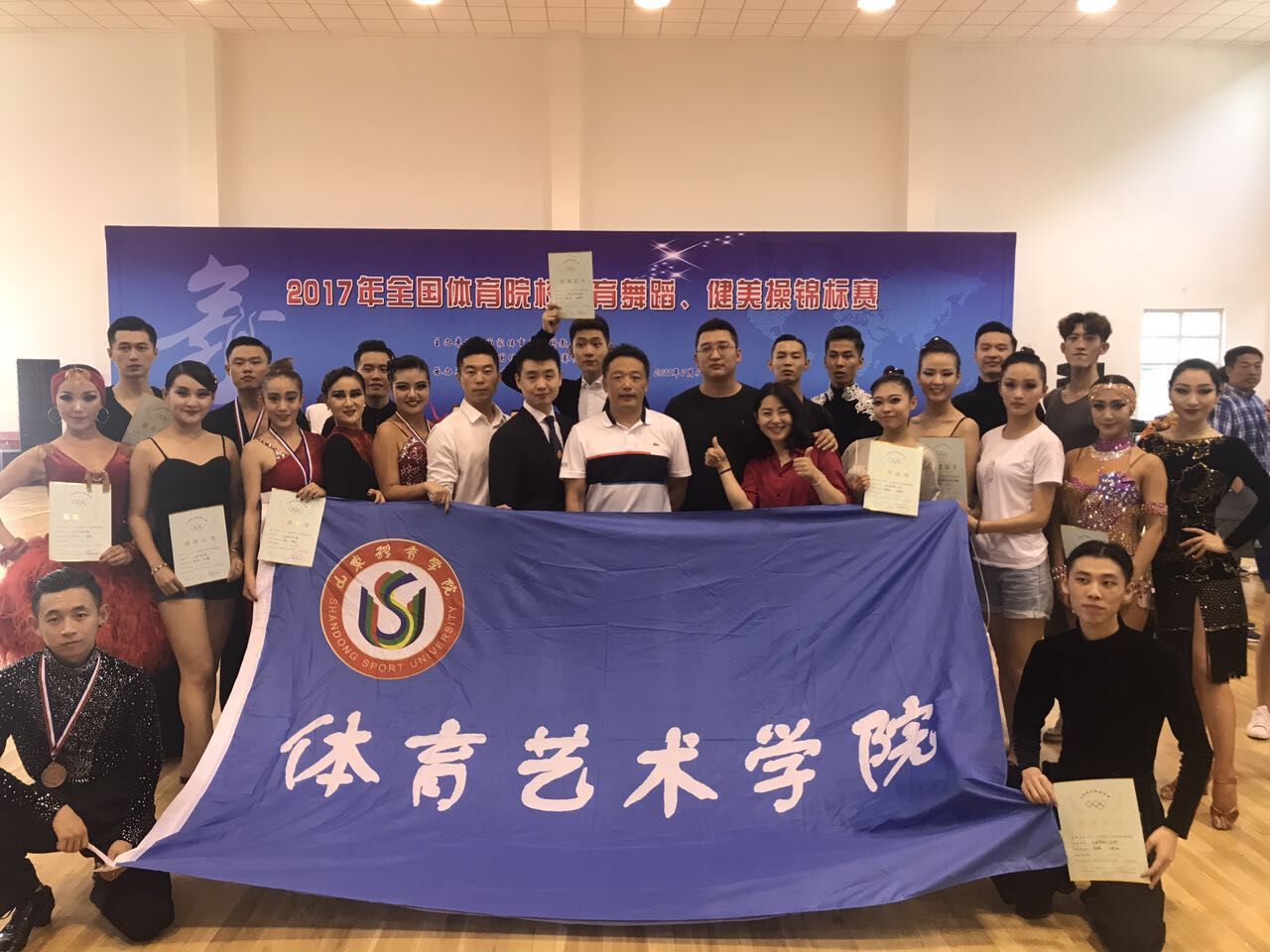2017年全国体育院校体育舞蹈、健美操锦标赛于7月8-10日在西安体育学院举行,经过激烈地角逐,山东体育学院共获得2枚金牌、2枚银牌、5枚铜牌,并荣获“体育道德风尚奖”“健美操最佳服装奖”“团体总分第七名”等团体奖项。