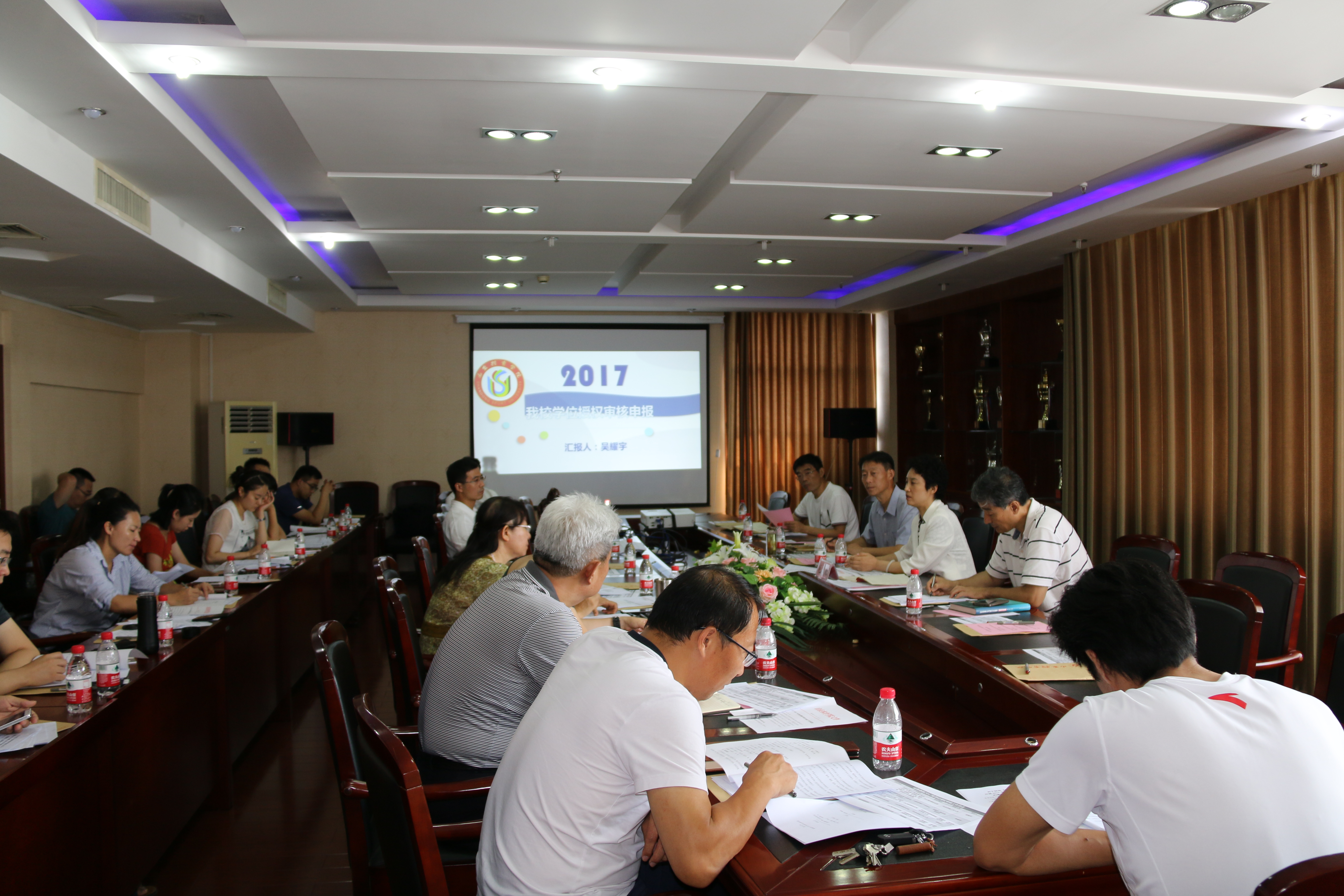 7月13日上午,我校在济南校本部办公楼五楼会议室召开2017年博士硕士学位授权审核申报会议,部署和研讨申请博士学位授权一级学科点、博士专业学位授权点、教育学一级科学授予权申报工作。副校长毛莉虹出席会议,研究生教育学院院长吴耀宇主持会议,研究生教育学院、教务处、科研处、财务处、院办等部门主要领导和相关部门有关人员参会。