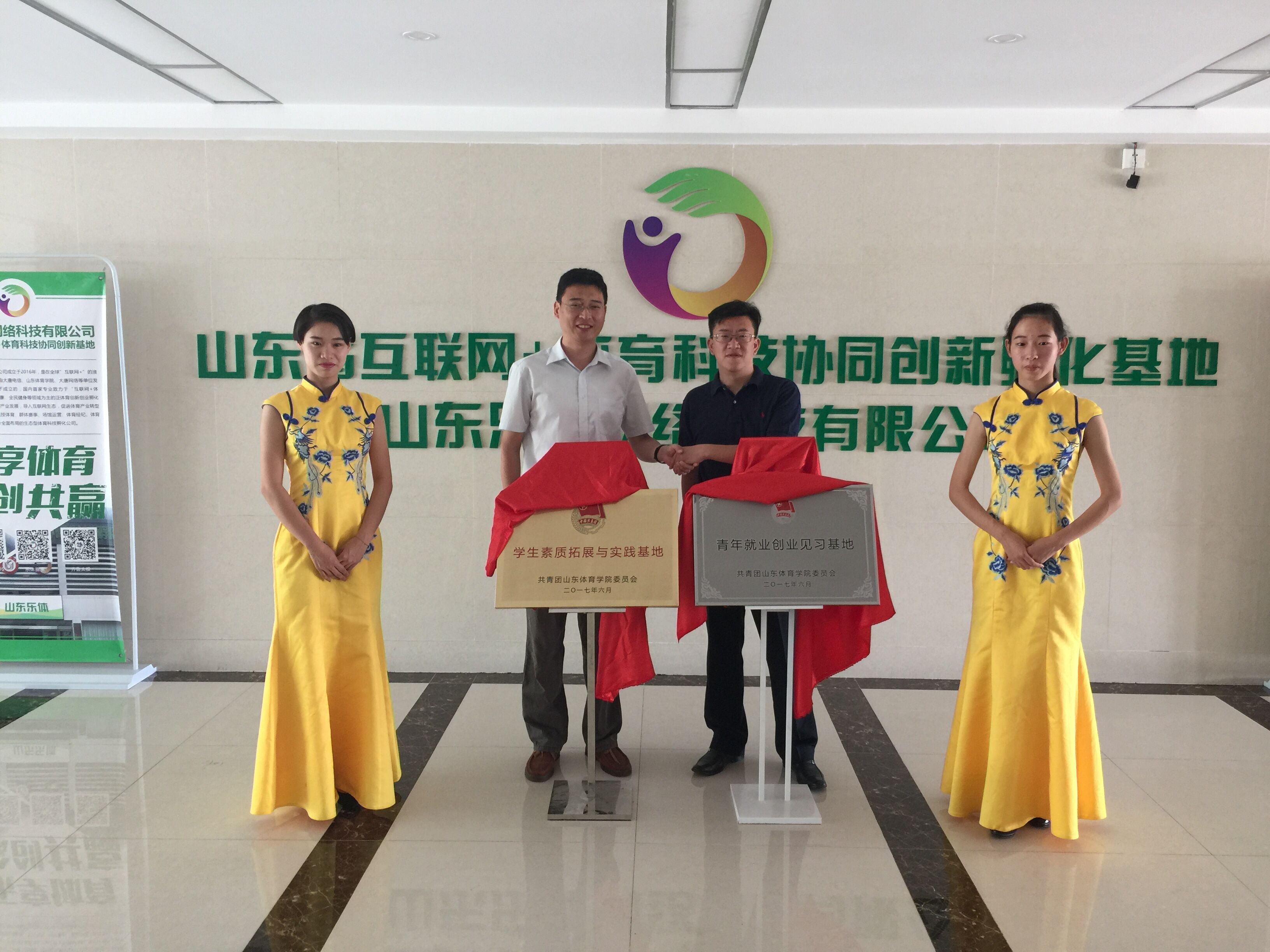 随着我院“乐体杯”第二届体育产业创新创业大赛入驻孵化基地签约协议和入住协议签订工作的结束,6月28日上午,我院“青年就业创业见习基地”和“大学生素质拓展与实践基地”揭牌仪式在乐体网络科技有限公司举行。团委书记周孟祥,山东乐体网络科技有限公司CEO谭旭共同为两个基地揭牌。团委副书记郝起、五个学生项目负责人及部分创业团队成员参加了本次活动。