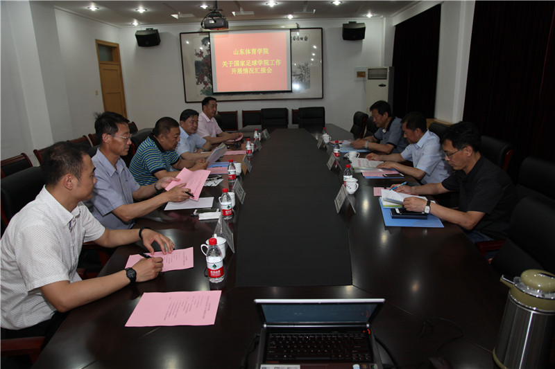 王毅代表学校,对中国足协和省体育局领导牺牲节假日休息时间莅临国家足球学院检查指导工作表示热烈的欢迎和衷心的感谢。王毅简要介绍了国家足球学院自2017年1月揭牌以来的建设发展有关情况,指出国家足球学院的成立凝聚着国家体育总局、山东省政府、中国足球协会、山东省体育局等多部门领导的关心和支持。学校党委提出了明确的发展目标和发展定位,制定了分“三步走”的中长期发展规划,现已完成了内设机构设置、人员调配和培养方案修订工作,正面向全球招聘高端人才和专家团队,并着手引进高层次优质特色课程。王毅希望得到中国足球协会有力的行业引领和专业指导,帮助国家足球学院驶入科学健康发展的快车道。