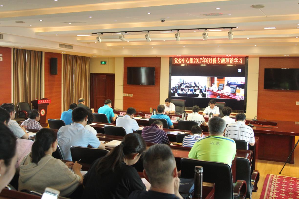 6月8日,学校党委中心组专题理论学习在济南校本部举行。学校党政领导,各部门、各院校主要负责人及各党总支书记参加学习。日照校区在办公楼四楼以视频会议形式同时进行。党委副书记、纪委书记张云龙主持学习。