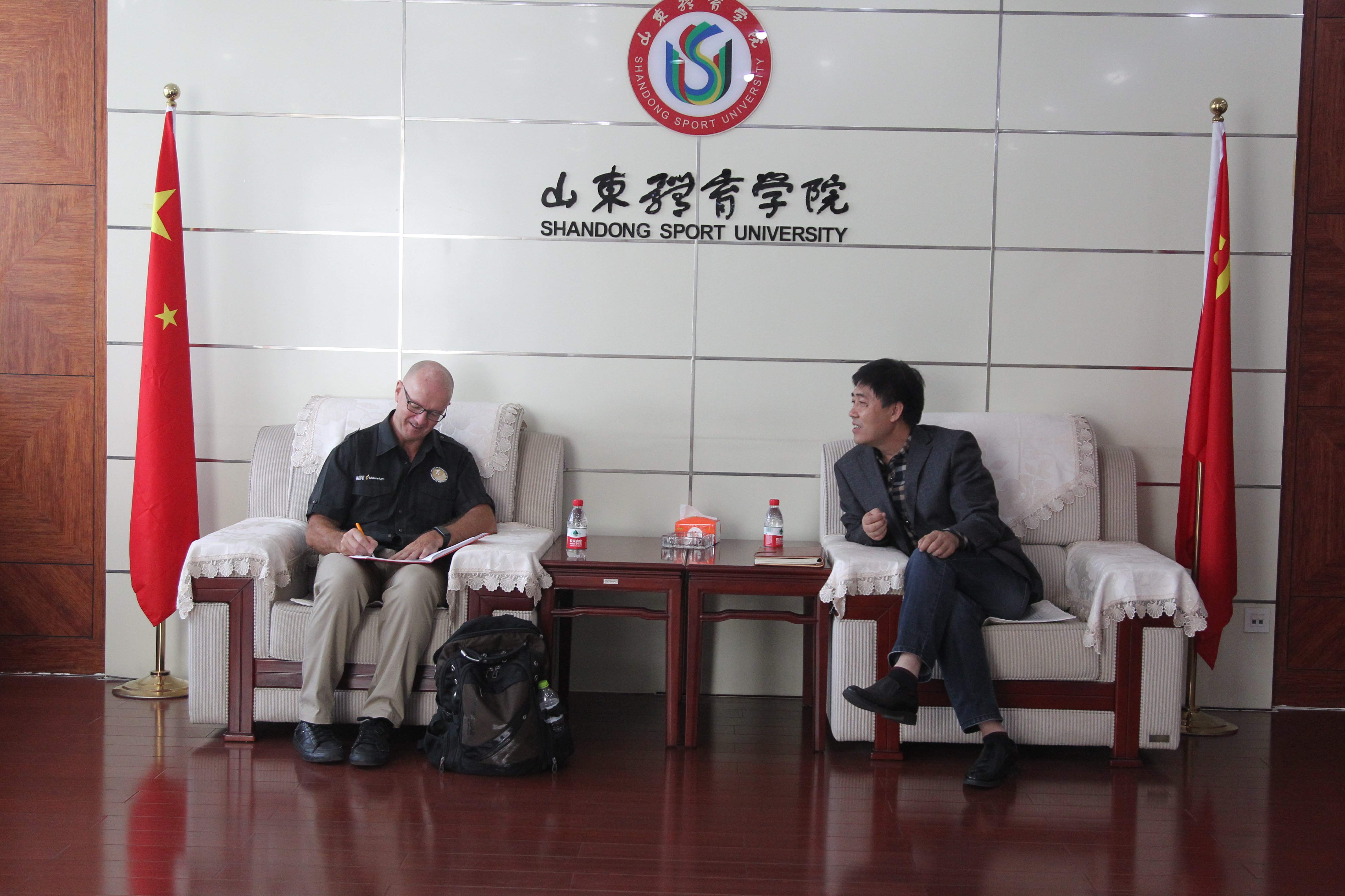 Cronin教授参观了学校的实验室,对我校的科研设施、设备给予了肯定,并就将来的合作事宜提出了具体的建议。科研处处长章岚教授、体育科学研究院首席专家王培林教授参与座谈和主题讲座。